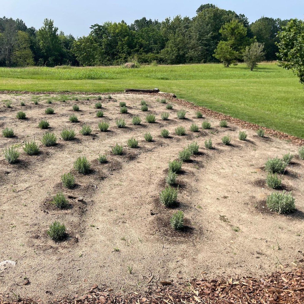 When she showed me her newly planted lavender bed, she said that lavender likes sandy soil with good drainage. She recommended a mix of 1 part sand, 1 part potting soil, & 1 part compost. She recommended to water daily at first & then wait a day, water, & then 2 days, water, & then 3 days, water, and so forth until established continuing to spread time out between waterings while watching the young plant for any stress. In the Southeast, you will want to look for varieties that tolerate heat and humidity of course. She likes the varieties “Grosso” and “Lavendula X Intermedia” (aka: Provence) for cuttings & “Lavendula Angustifolia” aka: English Lavender for culinary use.