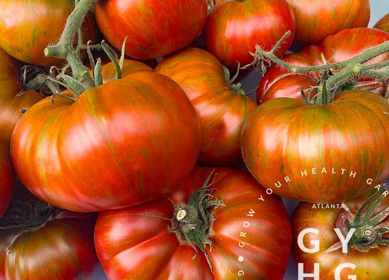 Chocolate Stripes Tomato seed stock comes compliments of Craig Schaaf. Photo copyright 2024 Grow Your Health Gardening.