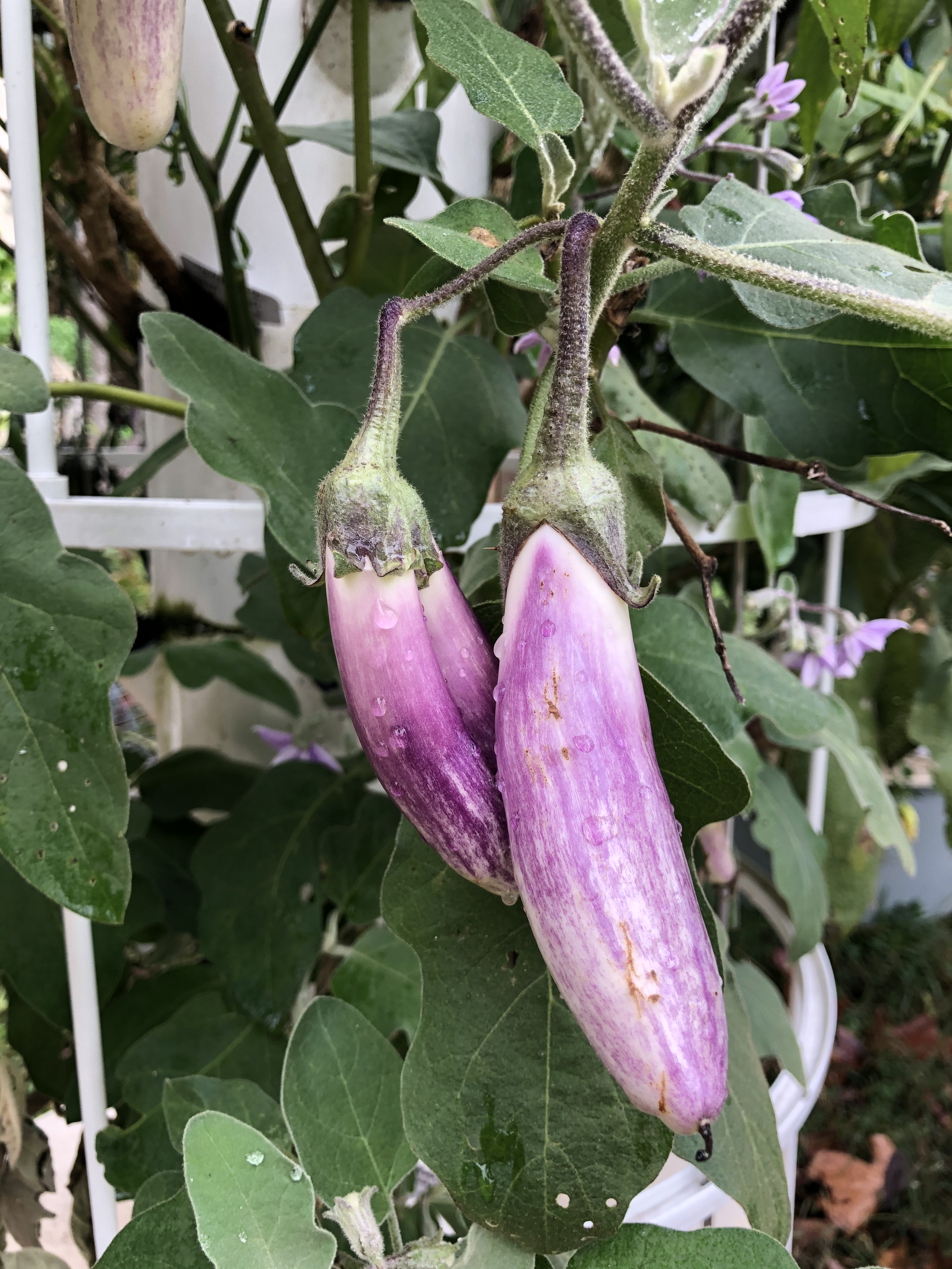 The stems of eggplants grow out about 3′-4′ and leaves can be larger than the size of your hand, so we recommend offering some kind of support (if growing in a Tower Garden, something like this).