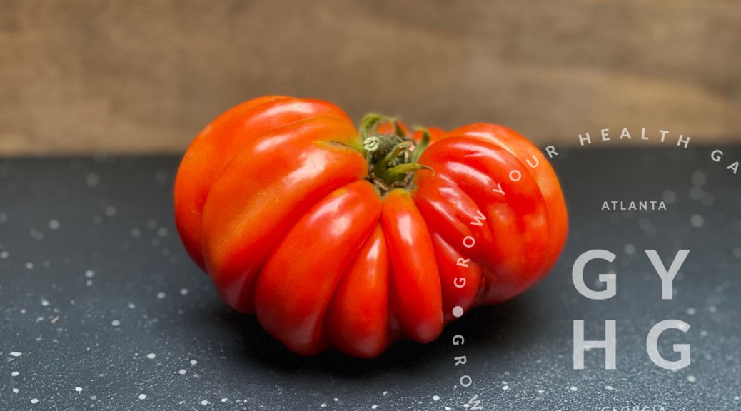 Aunt Ruby’s German Green Tomato. Photo copyright 2024 Grow Your Health Gardening