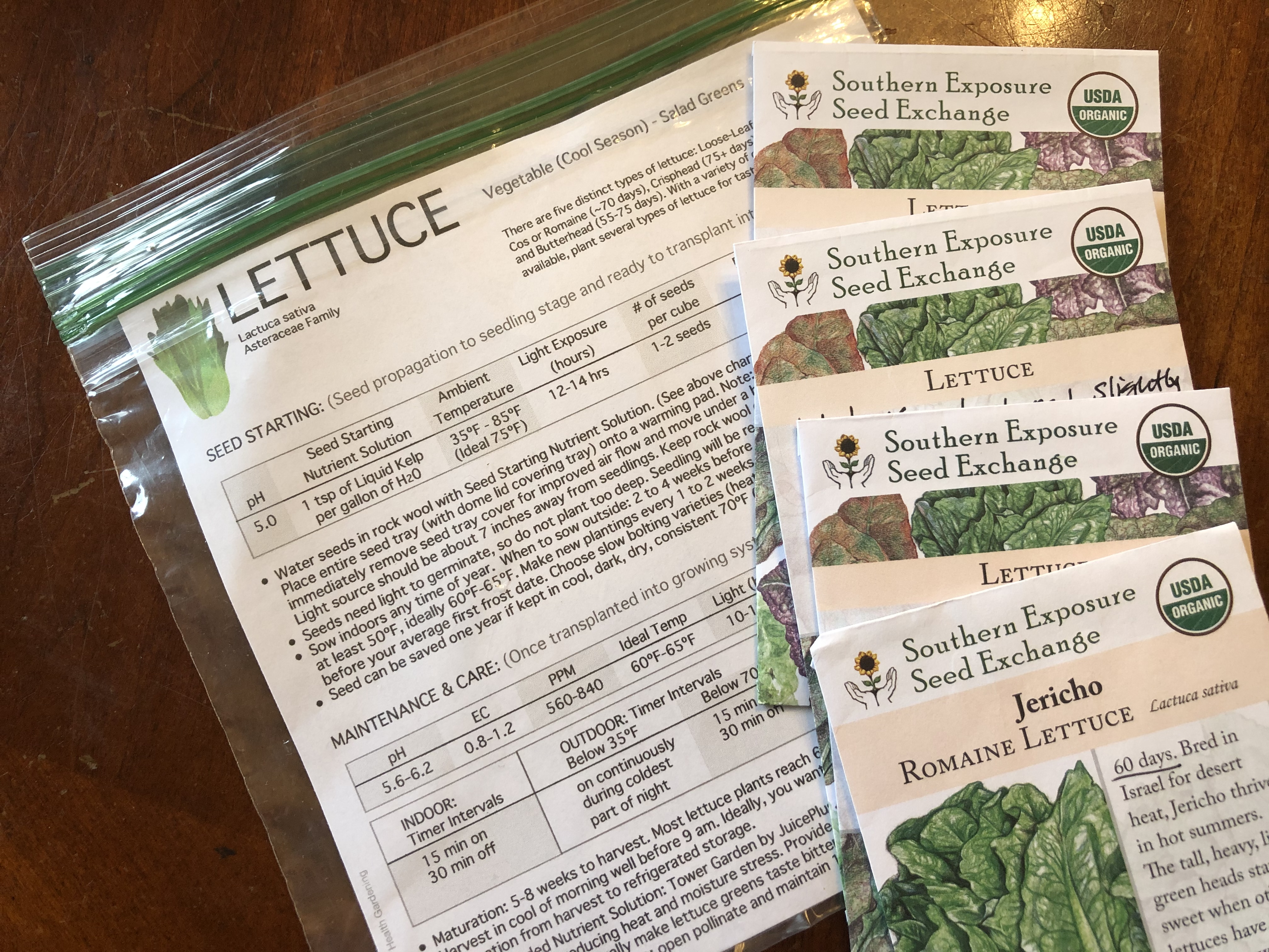 Download our lettuce cheat sheet that can be sliced down and put into a standard ziplock sandwich bag and used for seed storage and/or as a growing journal for what happened with your crop (we put ours on a clipboard. | download PDF |